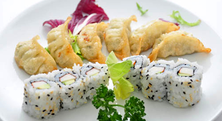 6 Raviolis japonais6 california surimi avocat