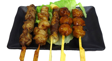 5 yakitori : 2 cuisse de poulet,2 boulette de poulet et 1 boeuf fromage et riz blanc